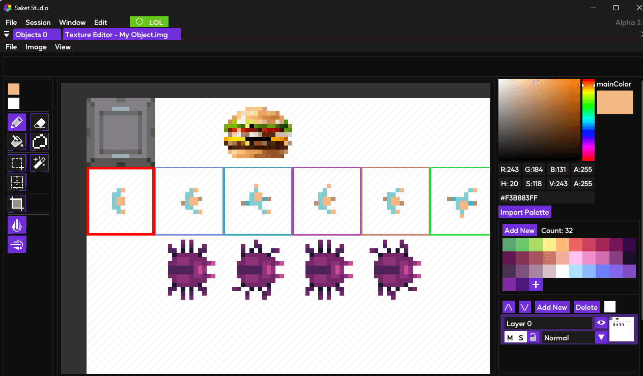 An online Multiplayer Networked sprite and palette editor, based on Saket Engine. Featuing: